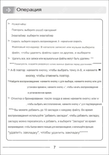 • воспроизведение: цикличность, эквалайзер, скорость воспроизведения;